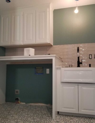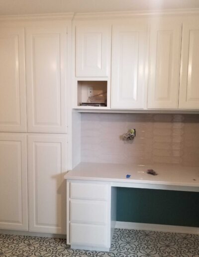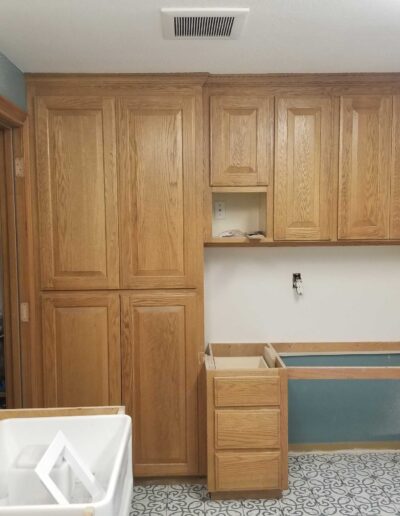 - Over 100 cabinet doors and drawers were removed, labeled, and carefully staged to ensure accurate reinstallation.