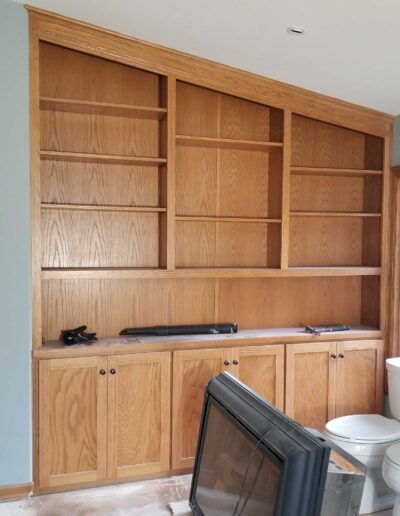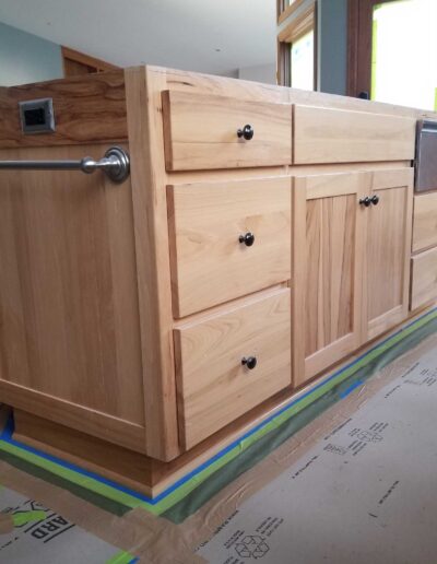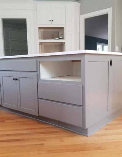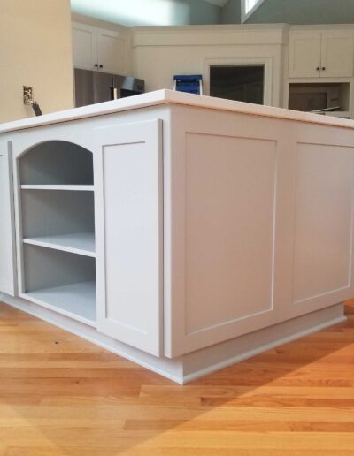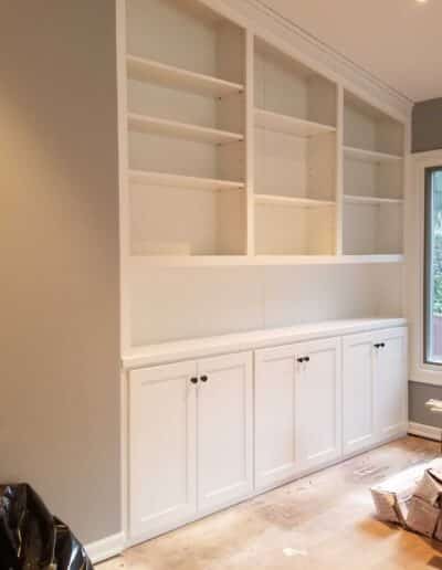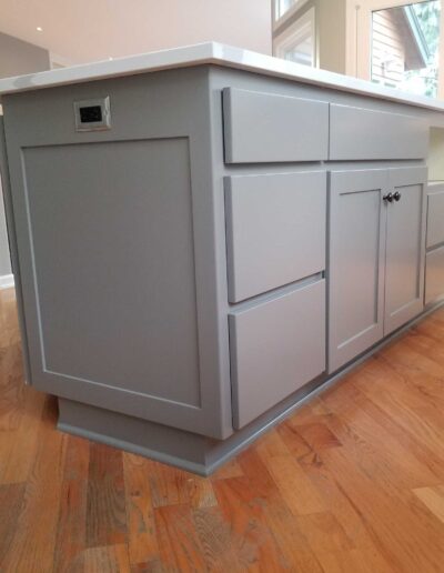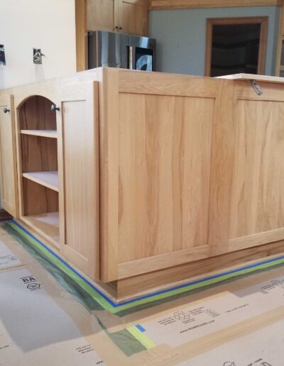 - Each cabinet component was thoroughly sanded, cleaned, and prepped before receiving two full coats of oil-based primer, providing superior adhesion, stain blocking, and a stable foundation for the finish coats.