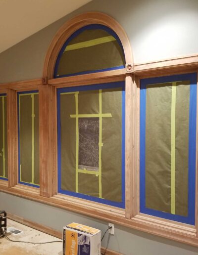 - Extensive masking and surface protection were used throughout the home to maintain crisp transitions between walls, ceilings, trim, and cabinetry.