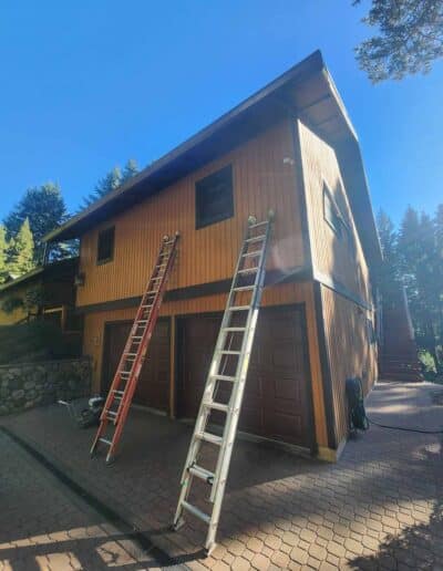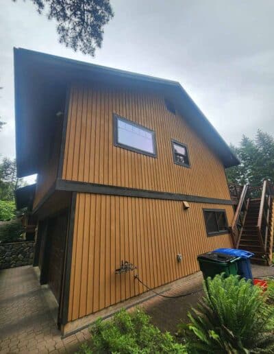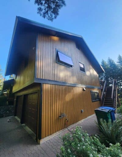 The original solid stain had begun to fade—an inevitable result of time and Oregon’s dynamic weather. While the wood siding remained in excellent condition, it needed a professional touch to restore vibrancy and ensure long-term protection.